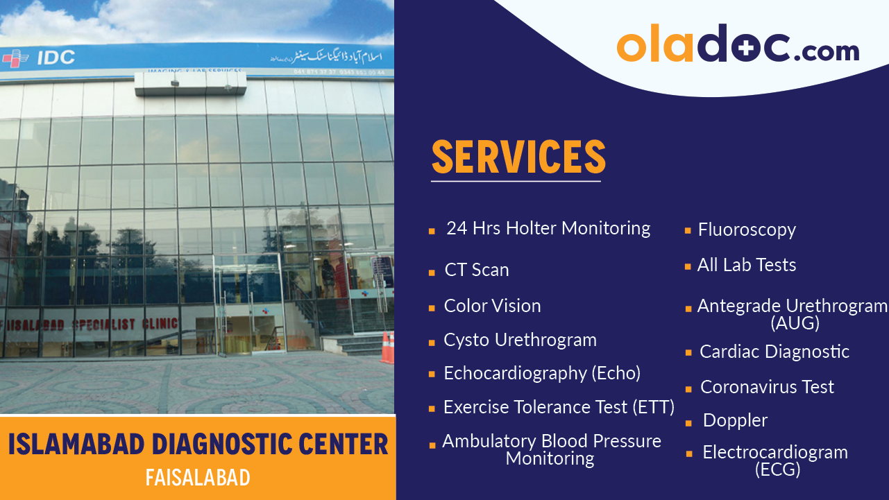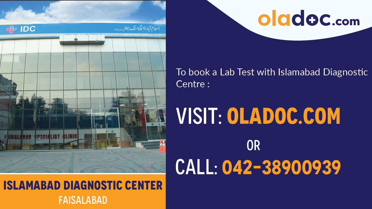 Click here to book an appointment with a doctor in Islamabad Diagnostic Centre, Faisalabad or you can also call 0415068065 from 9 AM to 11 PM to book your appointment.