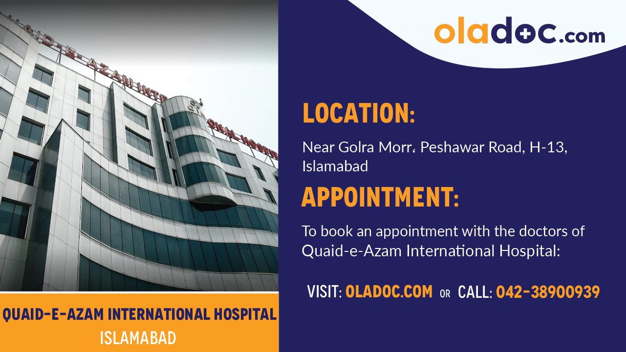 To Book, an appointment with any of the doctors at Quaid-e-Azam International Hospital Rawalpindi, call on 051-8151800 or click the “Book Appointment” button.