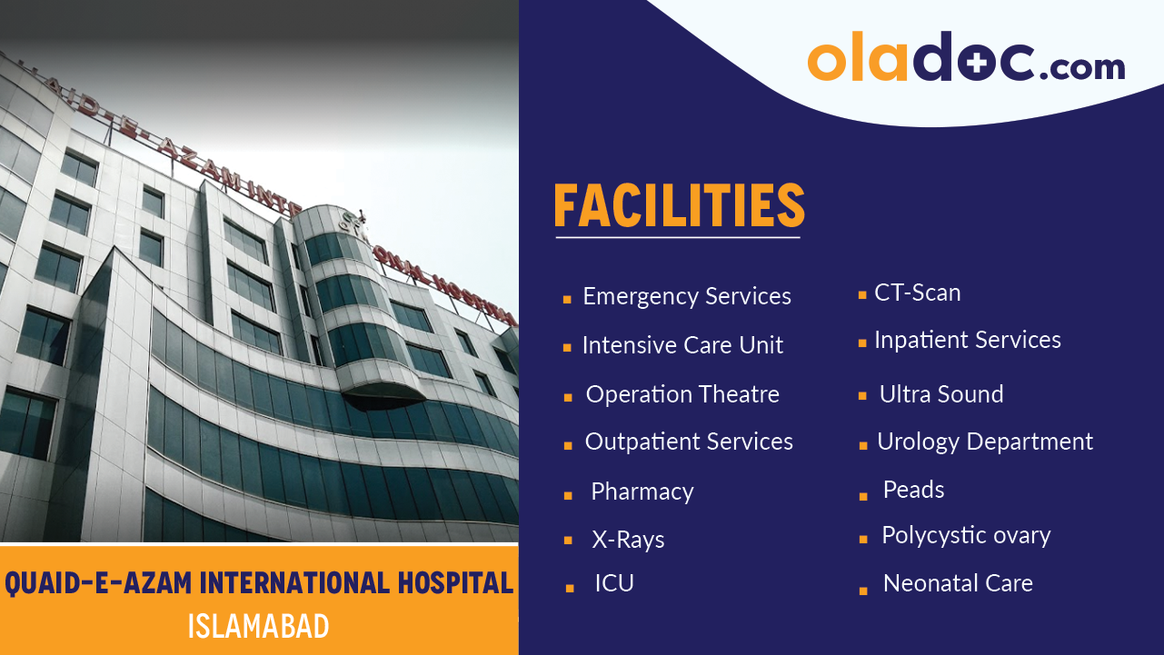 Quaid-e-Azam International Hospital (QIH) is a project of Global Health Services that was founded in 2004. It is a 400 Bed Hospital located near Golra Morr, Islamabad. The location is perfect for patients from both Rawalpindi and Islamabad.